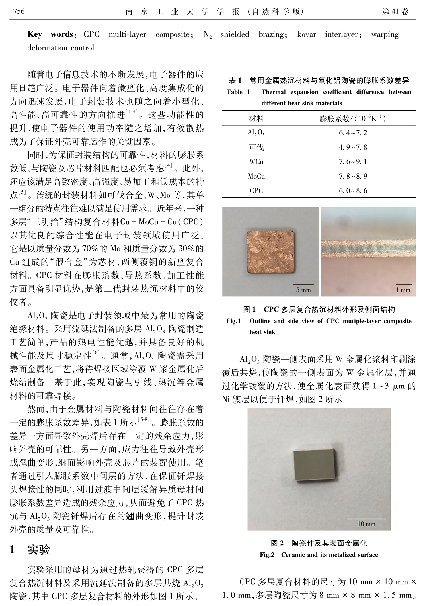 > 電子封裝用Cu-MoCu-Cu(CPC)材料與Al2O3陶瓷釬焊及變形研究