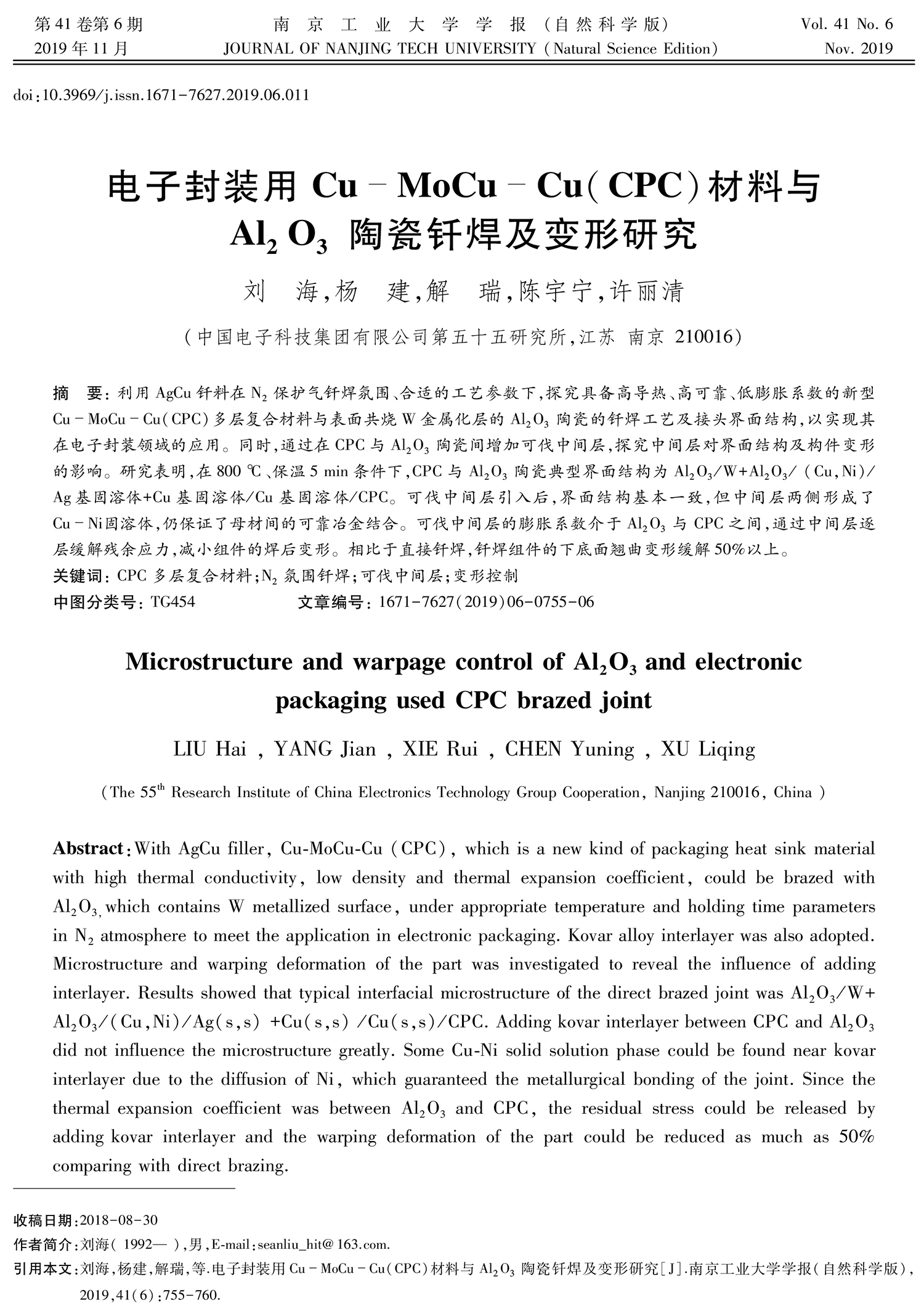 電子封裝用Cu-MoCu-Cu(CPC)材料與Al2O3陶瓷釬焊及變形研究